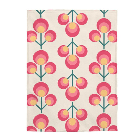 Mid Century Scandinavian Danish Pink Flower Bud Lightweight Velveteen Blanket
