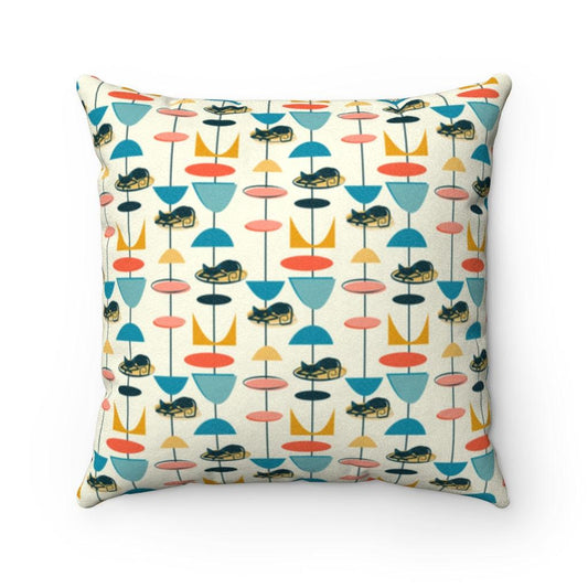 Retro 1950s Atomic Cat Multicolor MCM Pillow