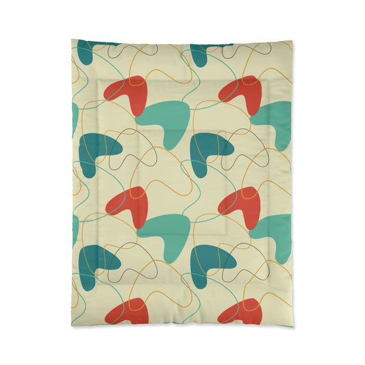 Retro 50's Atomic Boomerang Mid Century Mod Blue, Orange & Cream Comforter