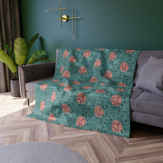 Retro 50's Atomic Burst Mid Century Mod Teal & Pink Crushed Velvet Blanket