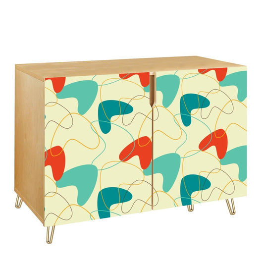 Retro 50's Atomic Boomerang Mid Century Mod Blue, Orange and Cream Sideboard, Credenza, Wooden Storage Cabinet