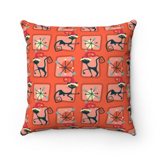 Atomic 50s Christmas Cat Retro Mid Century Mod Red Pillow