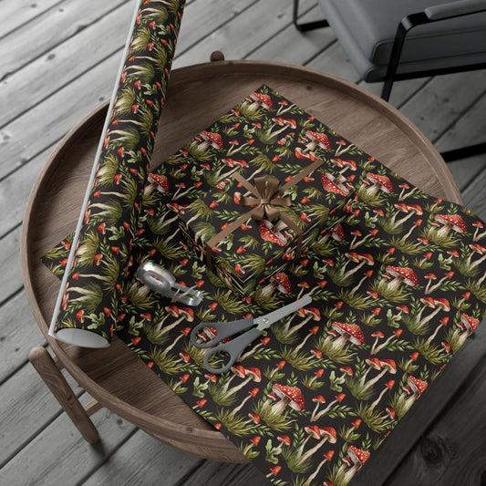 Amanita Muscaria Mushroom, Dark Cottagecore Watercolor Style Black, Red & Green Eco-Friendly Gift Wrap