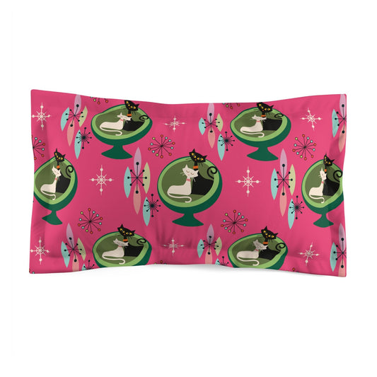 Retro 50s Atomic Cat Couple in Ball Chair Mid Century Mod Pink & Green Pillow Sham