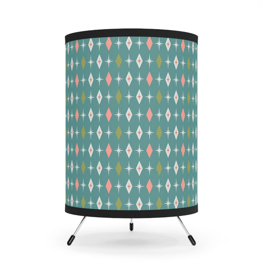 Retro 50s Atomic Burst and Diamonds Teal and Pink Tabletop Tripod Lamp