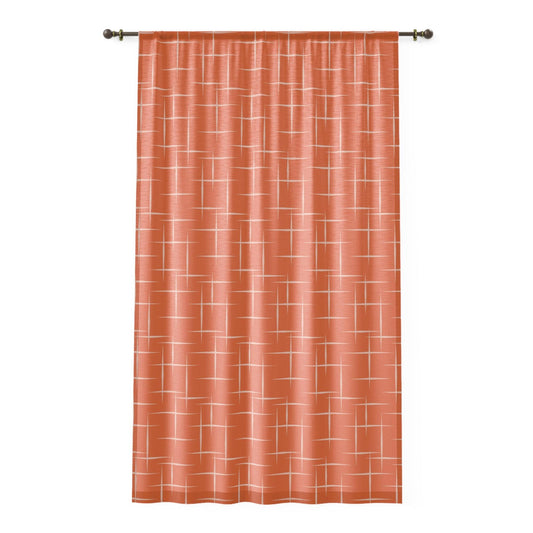 Retro 50s Orange Mid Century Modern Sheer Window Curtain