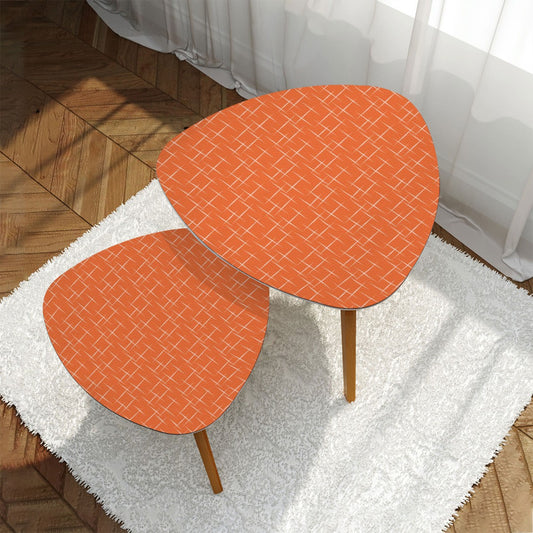 Retro 50s Mid Century Modern Abstract Lines Orange Nesting Accent Tables