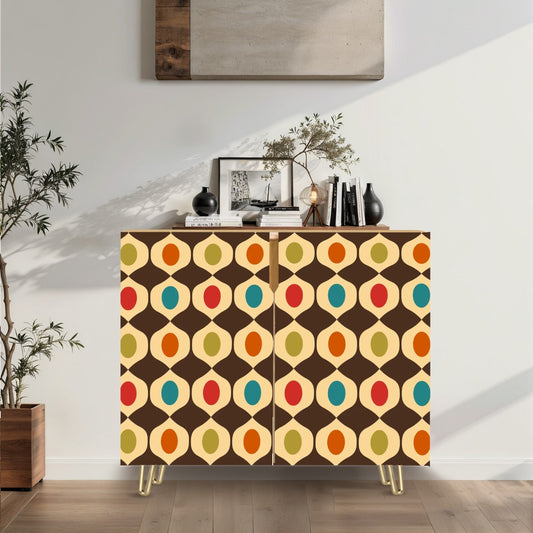Retro 60s & 70s Geometric Mid Century Modern Mutlicolor Sideboard, Credenza, Wooden Storage Cabinet
