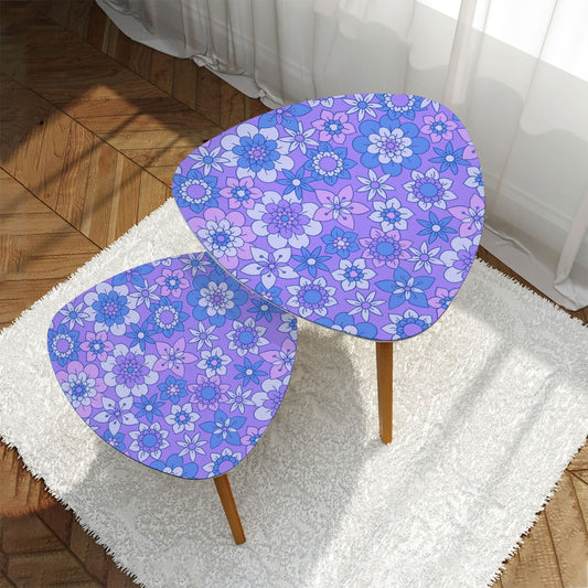 Retro 60s 70s Groovy Boho Flowers Purple & Blue Mid Century Modern Nesting Accent Tables