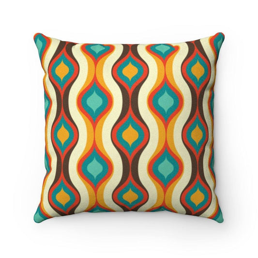 Retro 60s 70s Geometric Waves Brown, Orange & Blue Mid Century Modern Pillow