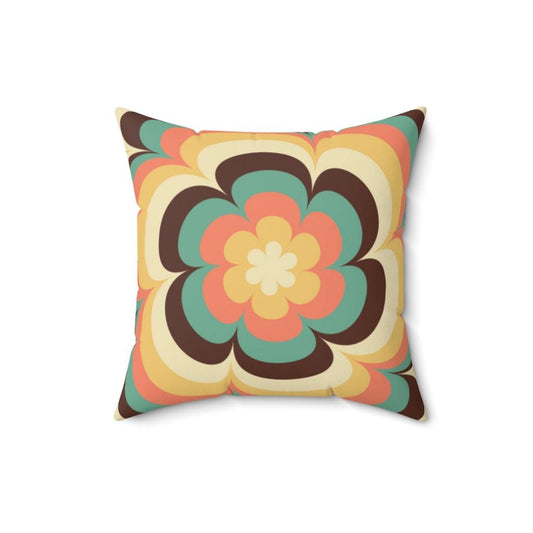 Retro 60s 70s Groovy Flower Mid Century Modern Multicolor Throw Pillow