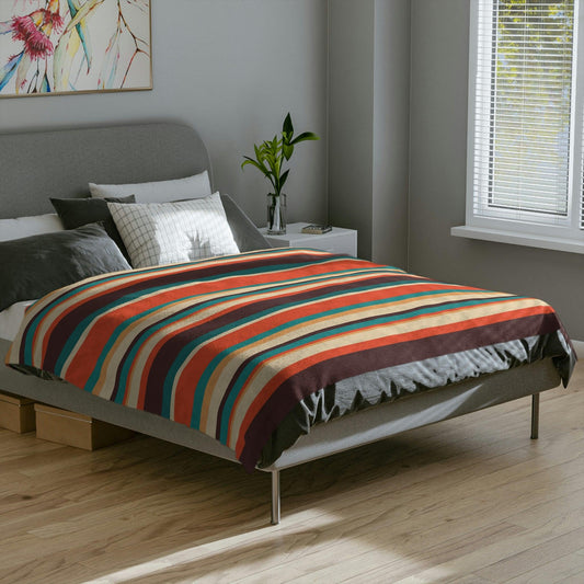 Retro 60s 70s Mid Century Stripes Brown, Orange & Cream Velveteen Microfiber Blanket
