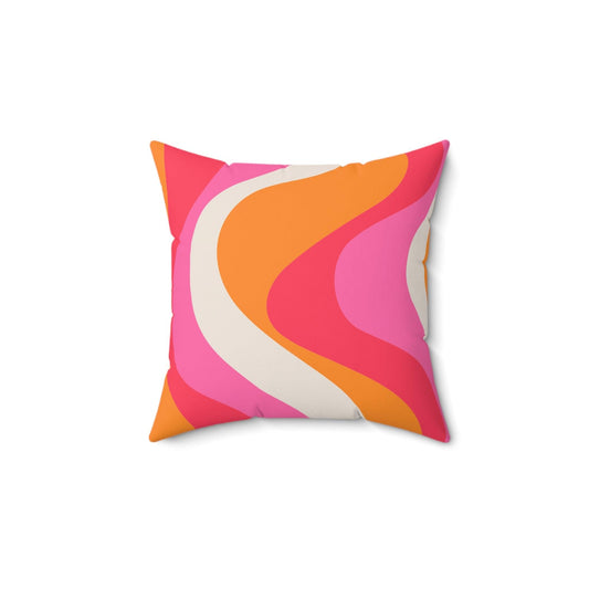 Retro 60s Groovy Hippie Swirl MCM Pink & Orange Throw Pillow