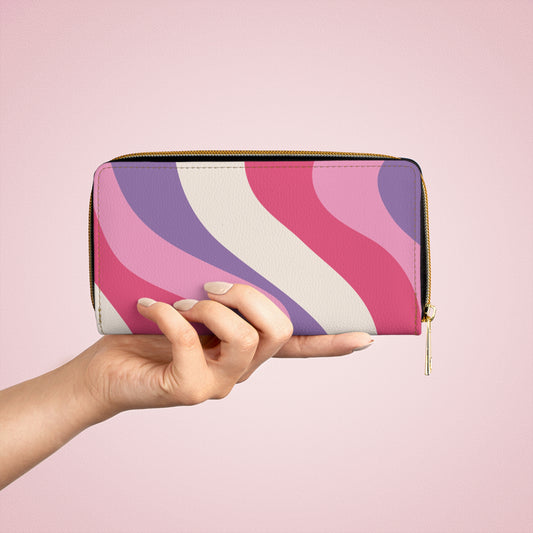 Retro 60s Groovy Hippie Swirl MCM Pink & Purple Zipper Wallet