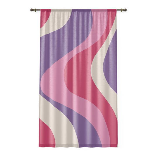 Retro 60s Groovy Hippie Swirl Mid Century Mod Pink & Purple Sheer Window Curtain