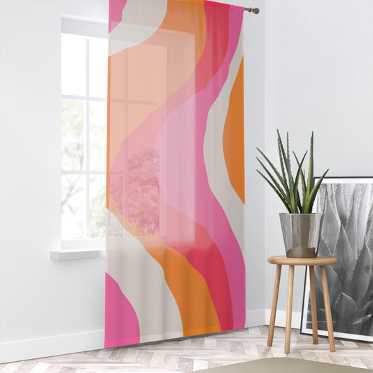 Retro 60s Groovy Hippie Swirl Mid Century Mod Pink & Orange Sheer Window Curtain