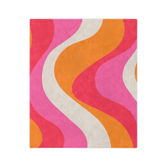 Retro 60s Groovy Swirl Mid Century Mod Pink & Orange Velveteen Microfiber Blanket