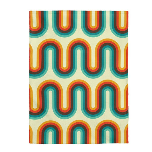 Retro 60s Groovy Waves Multicolor Velveteen Lightweight Blanket