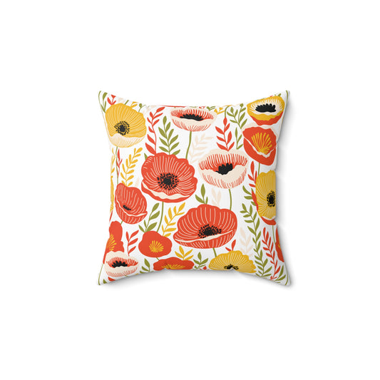 Retro 60s Mid Century Mod Poppies Floral Cottagecore Yellow, Orange & Green Throw Pillow