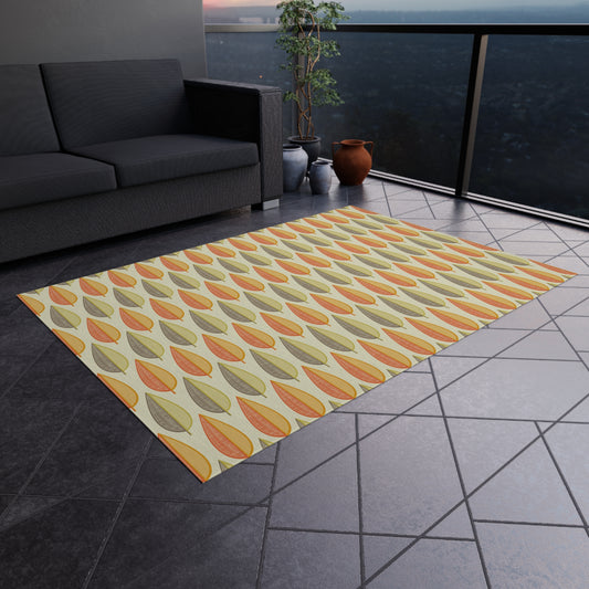 Retro 60s Mid Century Modern Leaves Orange, Green & Cream Indoor/Outdoor Accent Rug