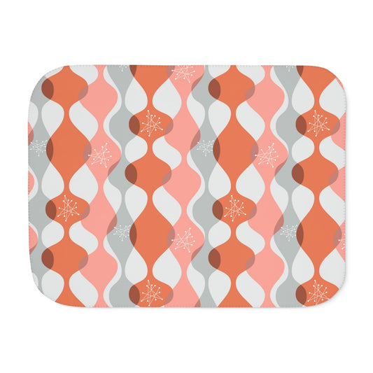 Retro 60s Mid Century Mod Groovy Abstract Wavy Pink Sherpa Blanket