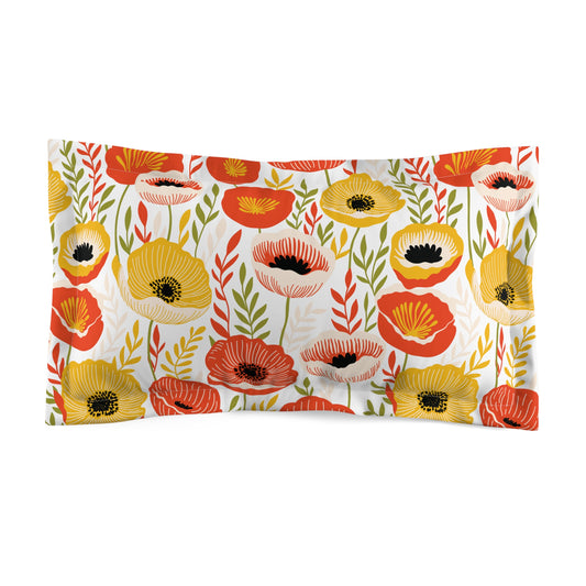 Retro 60s Mid Century Mod Poppies Floral Cottagecore Yellow, Orange and Green Pillow Sham