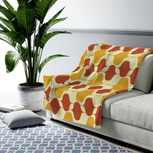 Retro 60s Onion Mustard/Orange Mid Century Modern Velveteen Lightweight Blanket