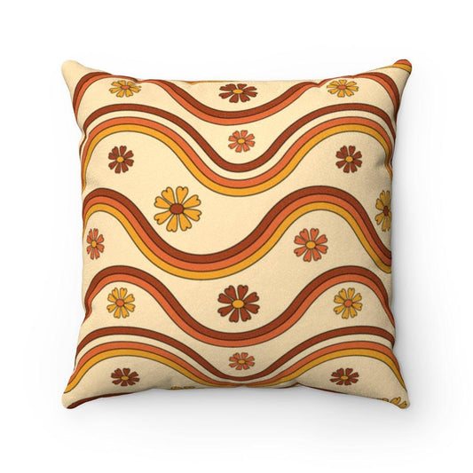 Retro 60s, 70s Boho Flowers & Rainbows MCM Multicolor Pillow