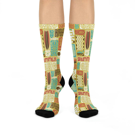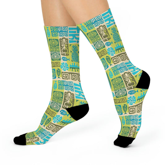 Retro 60s Tiki Mid Century Blue & Green Cushioned Crew Unisex Socks