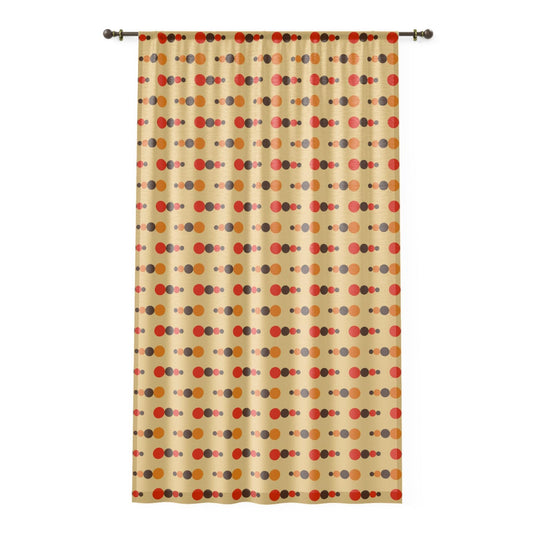 Retro 70's Funky Mid Century Modern Beige, Orange Brown Sheer Window Curtain