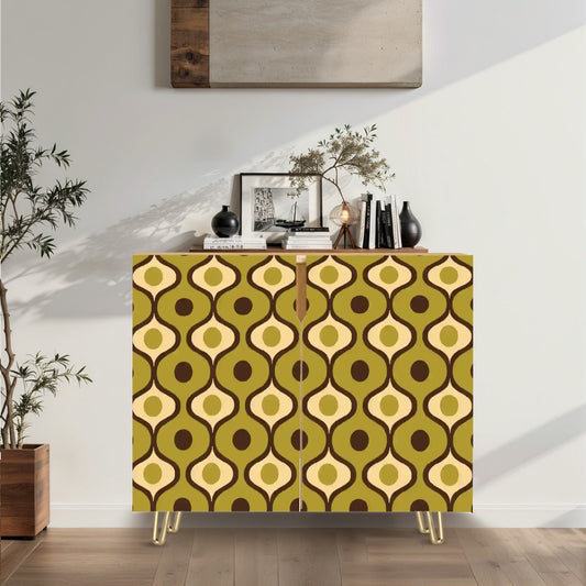 Retro 60s, 70s Geometric Mid Century Mod Green Sideboard, Credenza, Wooden Storage Cabinet