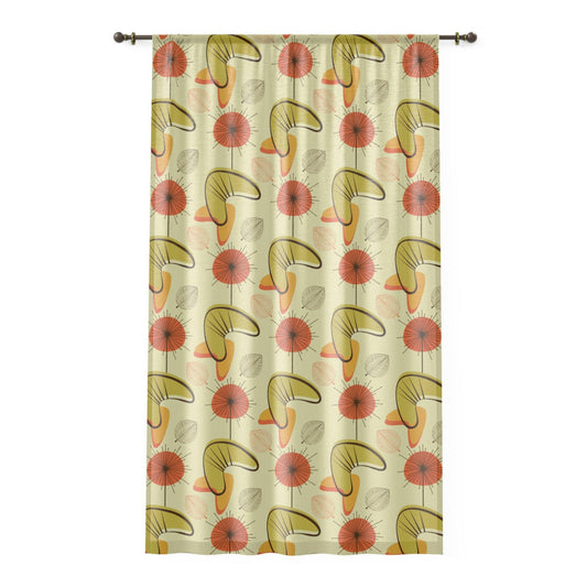 Retro Atomic Boomerangs & Leaves MCM Orange, Green & Yellow Sheer Window Curtain