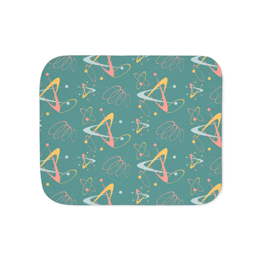 Retro Atomic Boomerangs Mid Century Modern Teal & Pink Sherpa Blanket