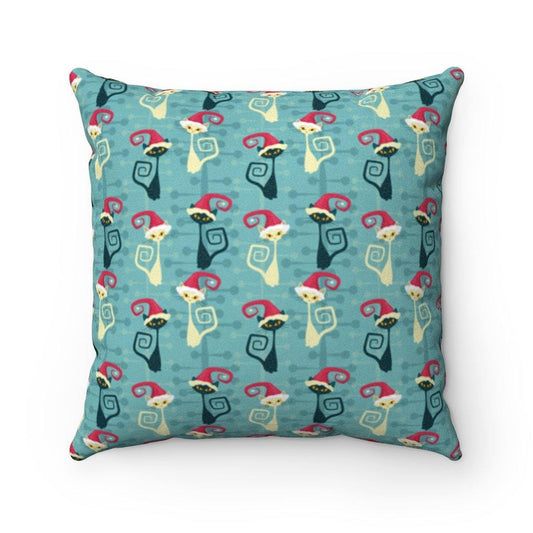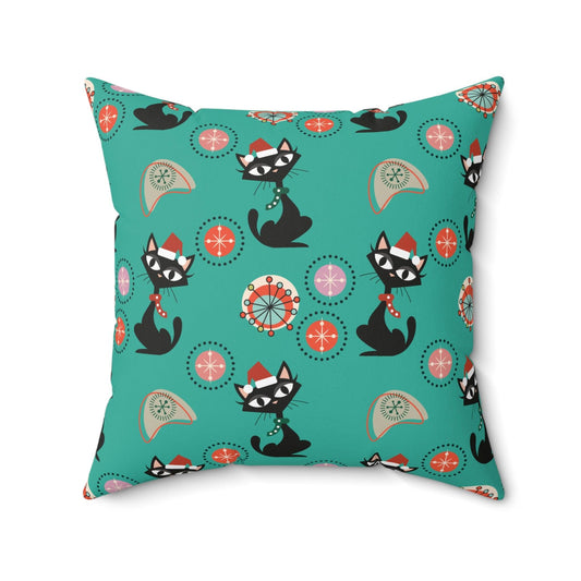 Retro Atomic Cats 1950's Christmas Mid Century Mod Teal Blue Throw Pillow