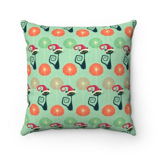 Retro Atomic Cats 50s Christmas MCM Green Throw Pillow