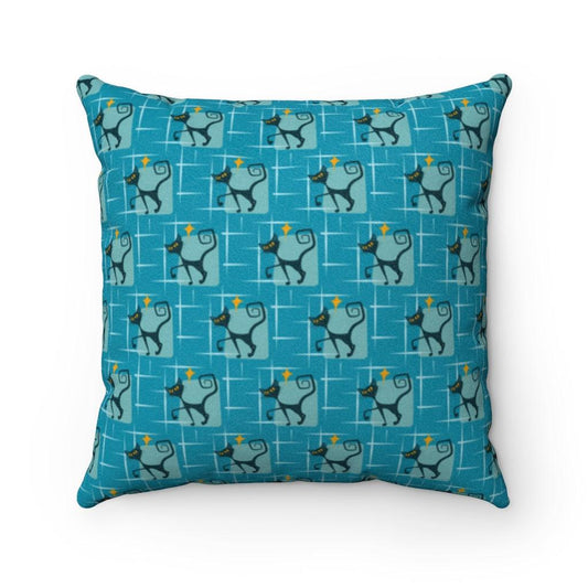 Retro Atomic Cats 50s Starburst Blue MCM Throw Pillow