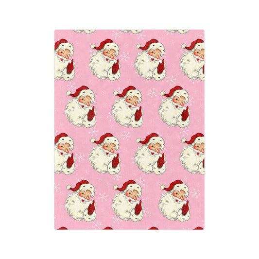 Vintage Winking Santa MCM Style Pink Velveteen Microfiber Blanket