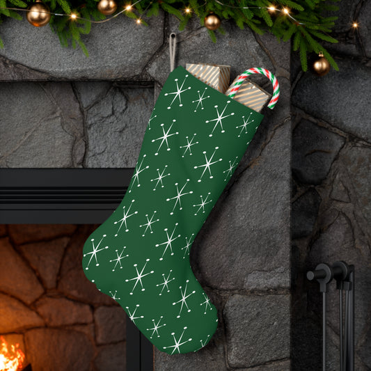 Retro 50s 60s Atomic Starburst Mid Century Mod Green Christmas Holiday Stocking