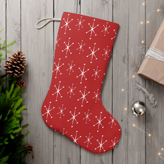 Retro 50s 60s Atomic Starburst Mid Century Mod Red Christmas Stocking