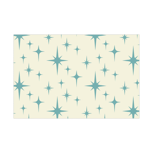 Large Starburst Version of Retro Atomic Starburst MCM Off-White & Blue Gift Wrapping Paper