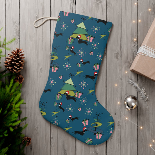 Retro 50's Atomic Dachshund Wiener Dog Mid Century Mod Blue Christmas Stocking