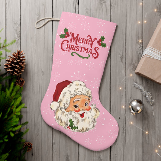 Retro Santa 50s Atomic Burst, Vintage Style Mid Century Mod Pink Christmas Stocking