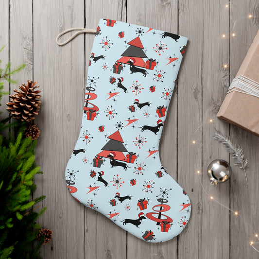 Retro 50's Atomic Dachshund Wiener Dog Mid Century Mod Light Blue Christmas Stocking