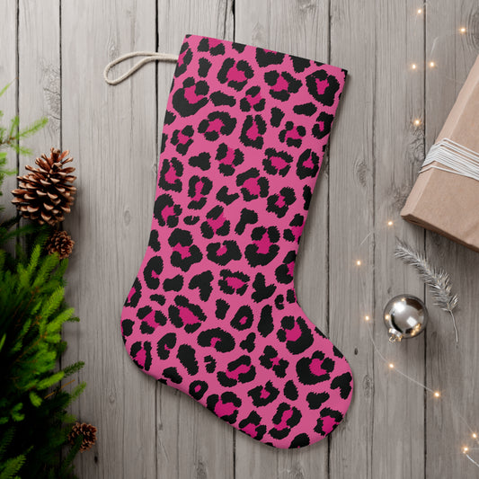 Pink Leopard Cheetah Spots Animal Print Christmas Stocking