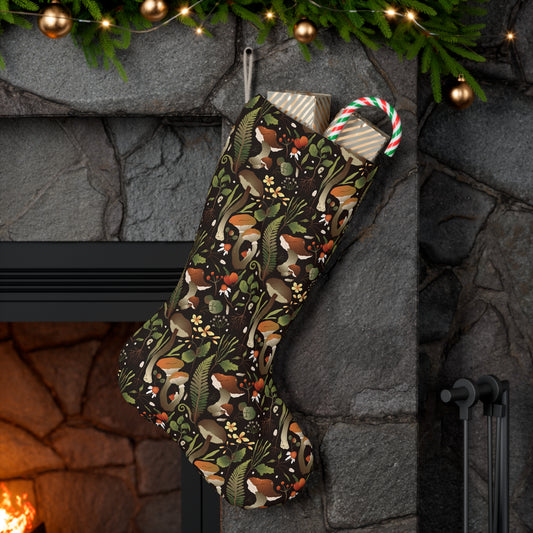 Mushroom Enchanted Forest Christmas, Witchy Cottagecore Black Stocking