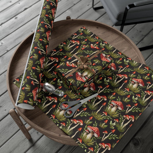 Amanita Muscaria Mushroom, Dark Cottagecore Watercolor Style Black, Red & Green Eco-Friendly Gift Wrap