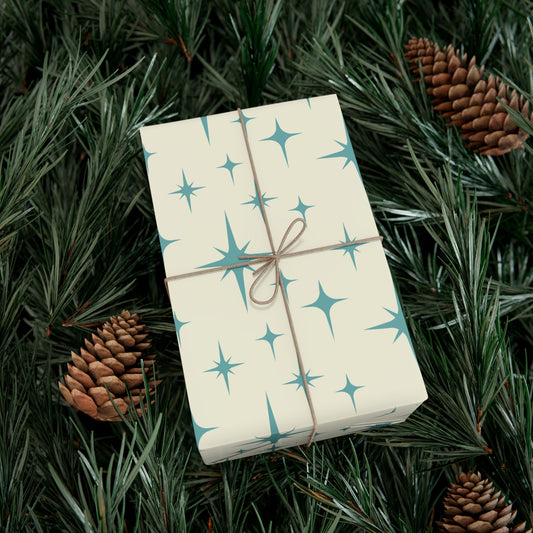 Retro Atomic Starburst MCM Off-White & Blue Gift Wrapping Paper