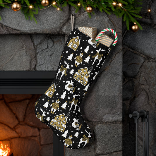 Nordic Winter Scene Black & White Scandi Christmas Stocking