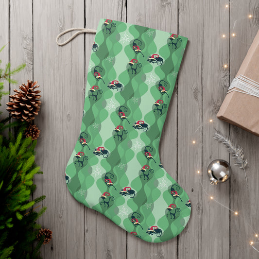 Retro Atomic Cat 50s Mid Century Modern Green Christmas Stocking