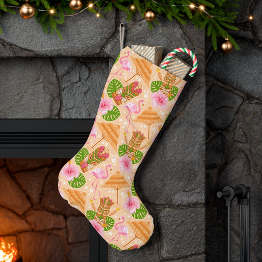 Retro Tiki 60s Flamingo Tropical Mid Century Modern Holiday Stocking